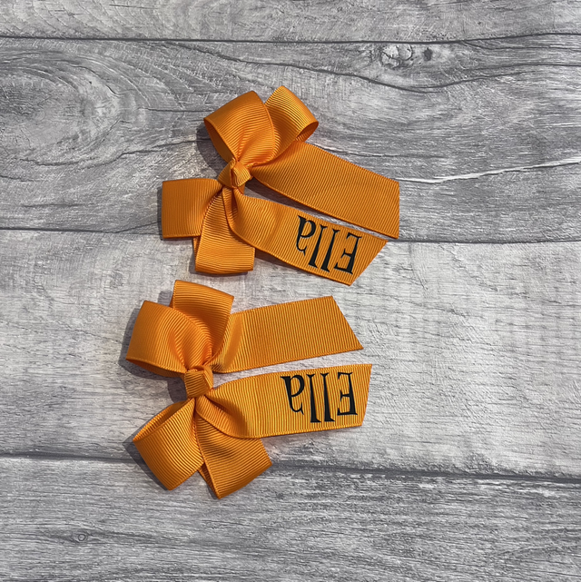 Add a touch of festive fun to any Halloween outfit with these vibrant holiday bows! Each bow is made from high-quality grosgrain ribbon and features bold Halloween-inspired prints like “Hocus Pocus” or custom names.