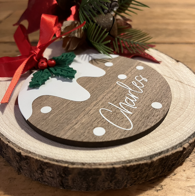 Finished with a cute felt embellishment and ribbon to hang on your tree.
