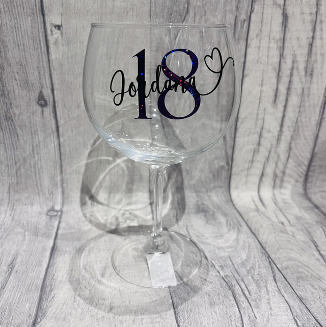 This personalised gin glass is the perfect gift for a special occasion such as birthdays or Mother’s Day. The glass is customised to the buyer's requirements, allowing them to choose a name or message to be added to the glass. The vinyl choices available for customisation are many, and the buyer can specify their colour choice(s) in the personalisation box. Please also specify the design as seen in the photos.