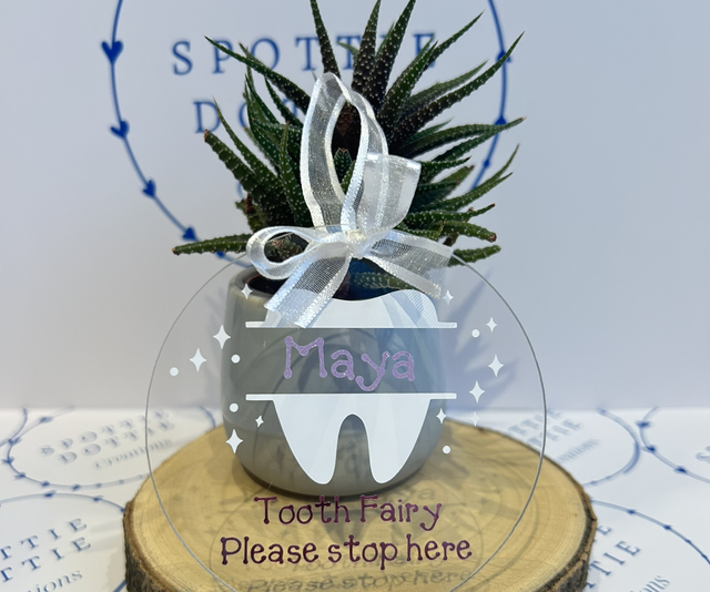 Personalised tooth fairy please stop here hanging disc